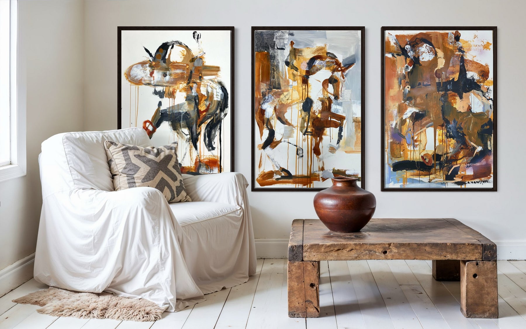 Semi-abstract painting of horse, painted in brown and gray tones, ideal for contemporary interiors
